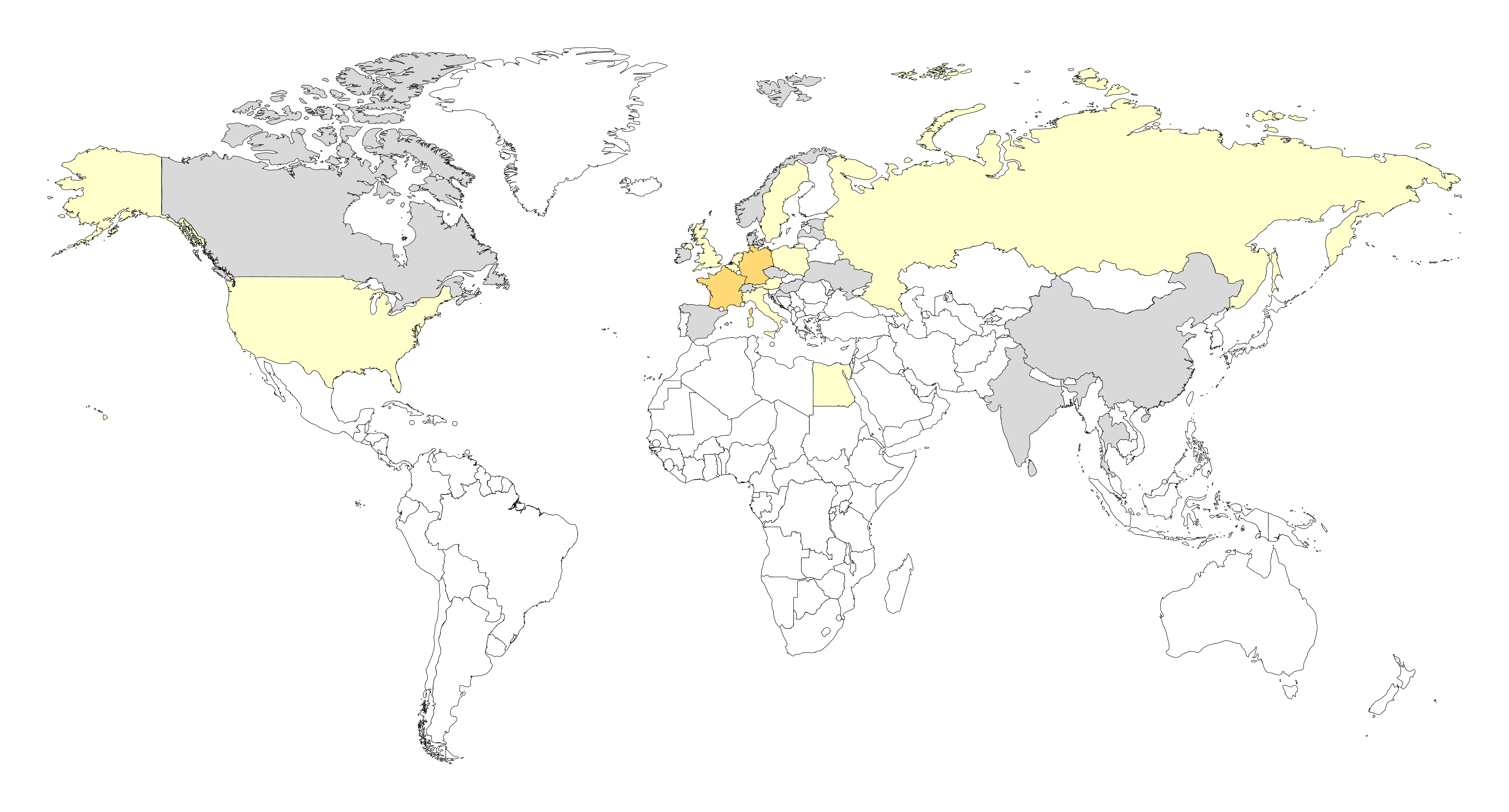 This page focus on an historical perspective. Countries are colored according to the following legend, and from 1.100 to 2.020 timeline. We can use the side arrows to scroll through these maps or use the direct links below: